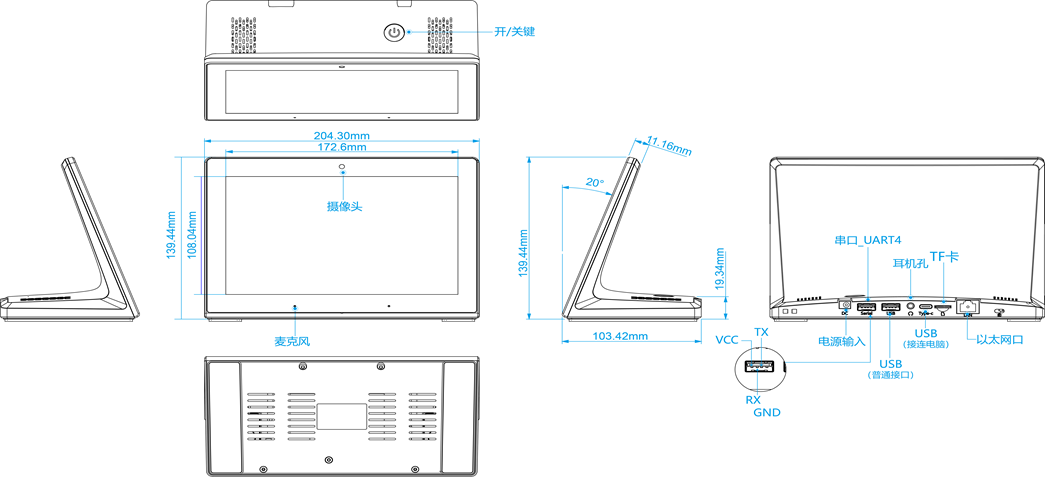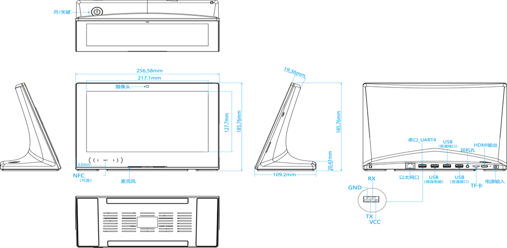 | 接口: | DC-in,RJ45×1,USB×4(COM電平*1),HDMI,TF卡槽,3.5mm耳機孔等 |